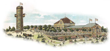 Der ehemalige Kaiser-Friedrich-Turm und die Gaststätte „Zum Aussichtsturm“.