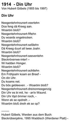 1910 Din Uhr, Hubert Göbel, Irmin Schmuck